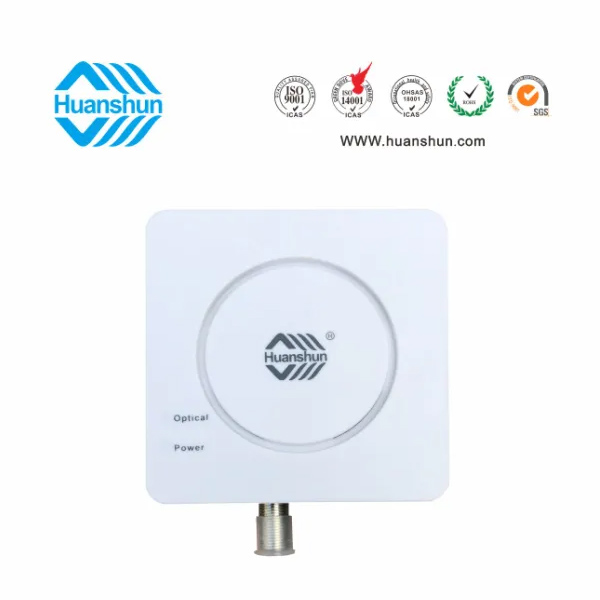 環順的HSGS10076DN光接收機是專為CATV網絡的FTTH應用而設計的入戶型光接收機。具有結構小巧緊湊、式樣美觀、應用方便等特點,在高達1000Mhz的帶寬下能夠提供穩定的輸出電平和優異的性能指標,具有極寬的光功率工作范圍。