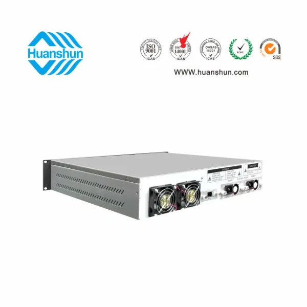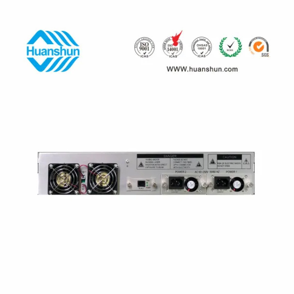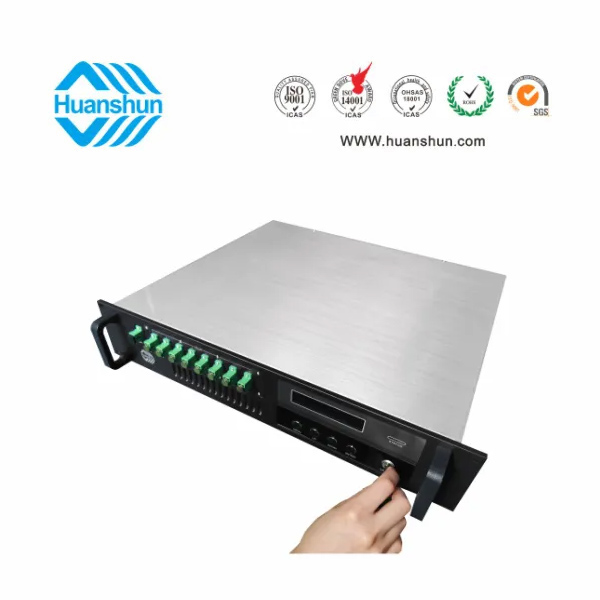 19 " 2U/3U標準機箱,-5 ~ +10 d Bm輸入,8路標稱規格(16、17、18、19、20、21、22、23、24dBm)放大輸出,并支持下調-2dB,安全連接模式,NF ≤ 5dB(0dBm時);內置FWDM合波器,插播損耗 ≤ 1dB;雙模塊熱插撥電源,AC90 ~ 255V或DC-48V供電,RJ45標準網管(支持SNMP、WEB)