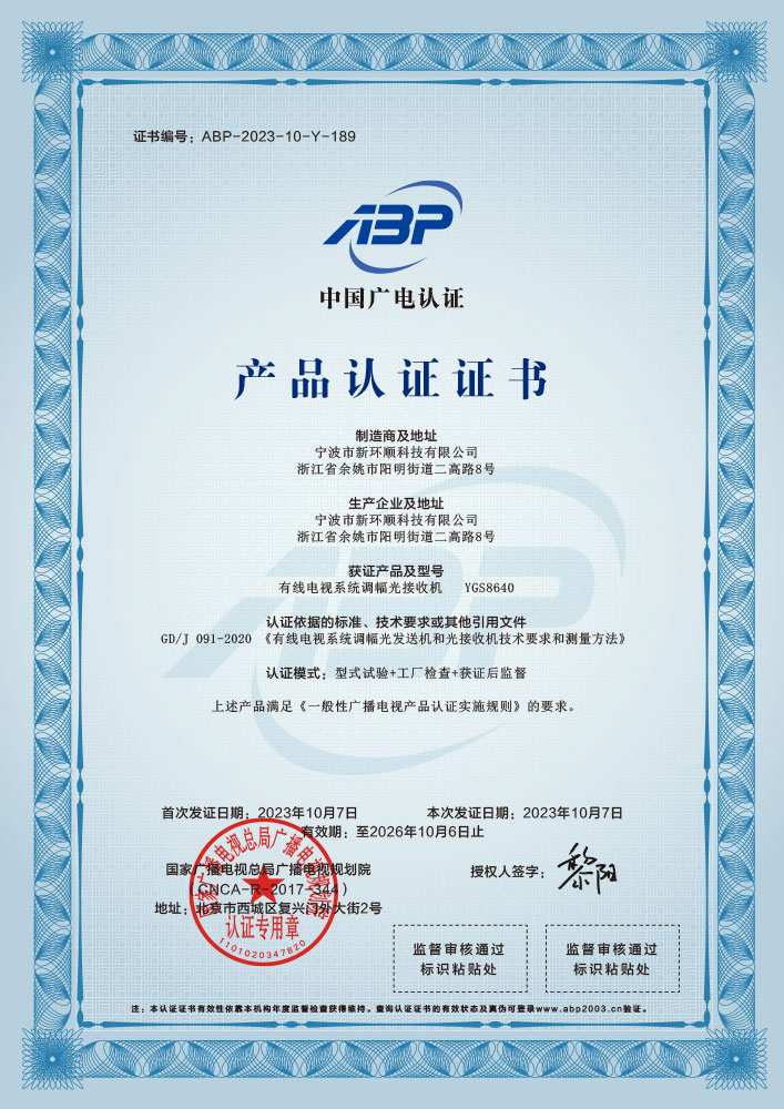 有線電視系統(tǒng)調(diào)幅光接收機認證